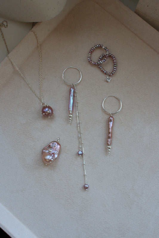 Сережки "Bubbles" з пурпуровими перлинами