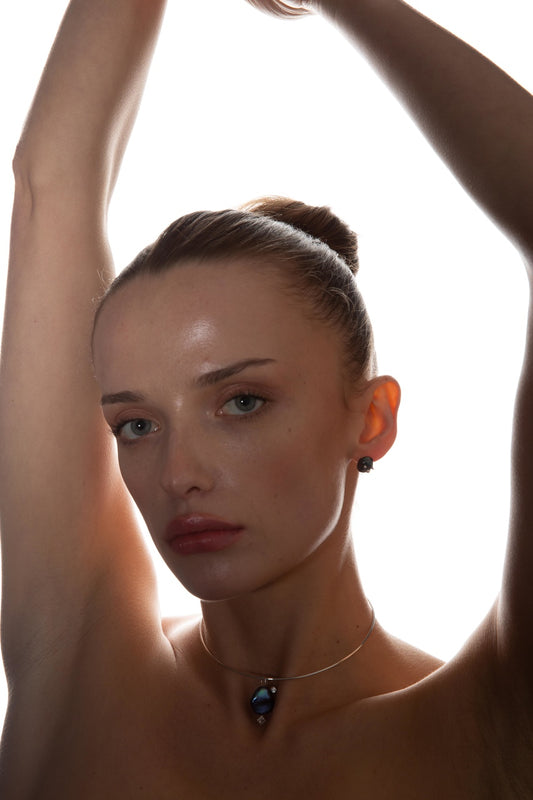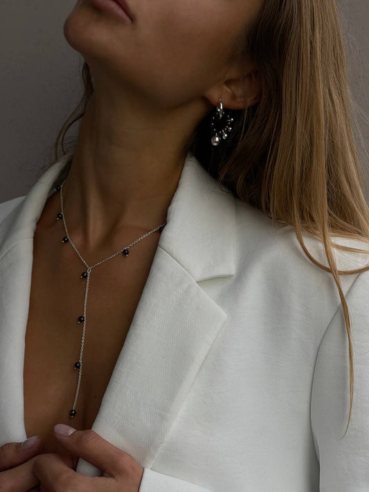 Кольє з чорною перлиною та цирконом