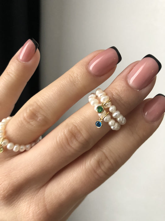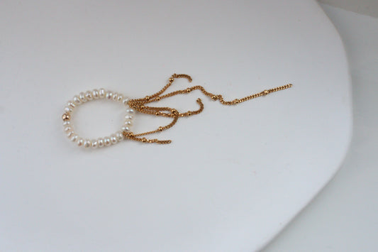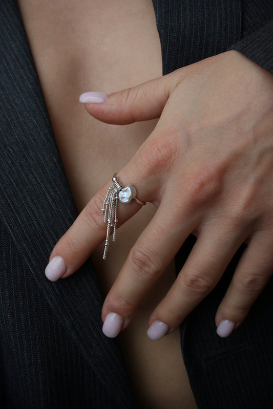 Black pearl ring with chains