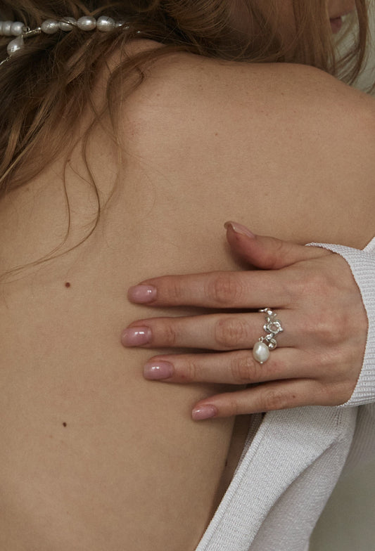 Black pearl ring with chains