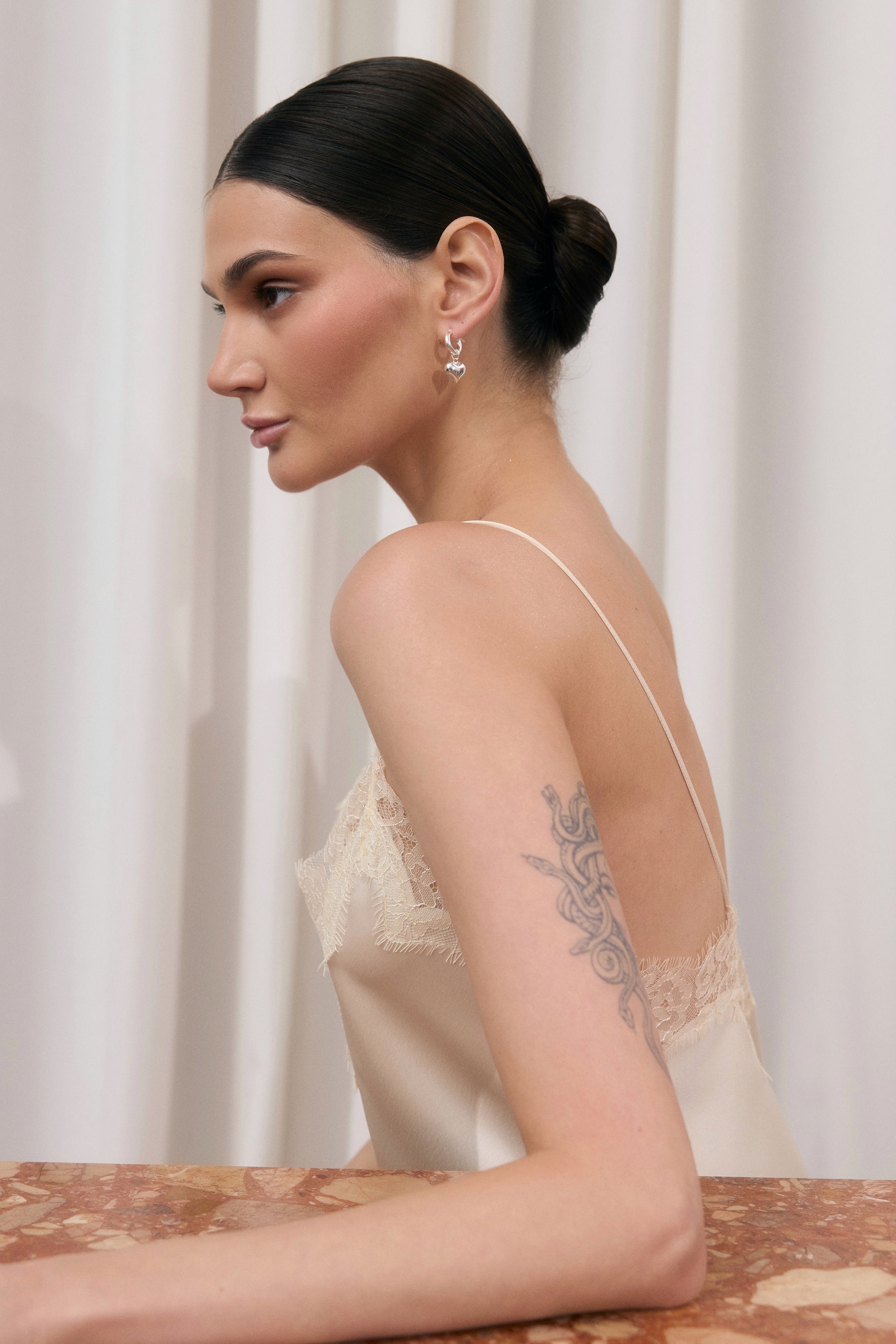 Акцентні сережки з підвісами у формі серця. Підвіси з'ємні.
