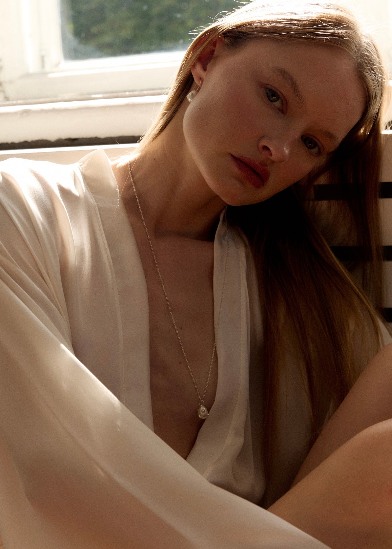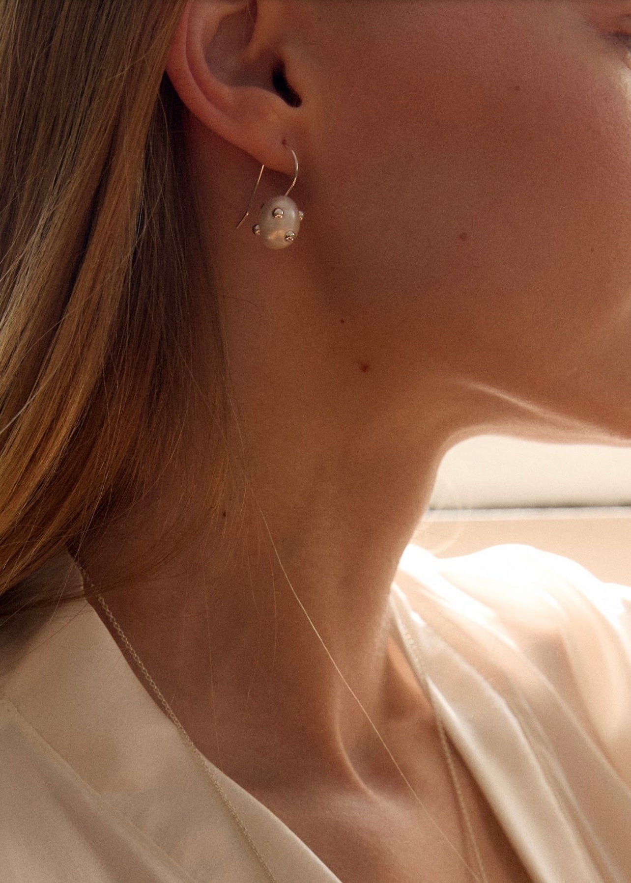 Сережки натуральних перлин інкрустованих краплинами срібла