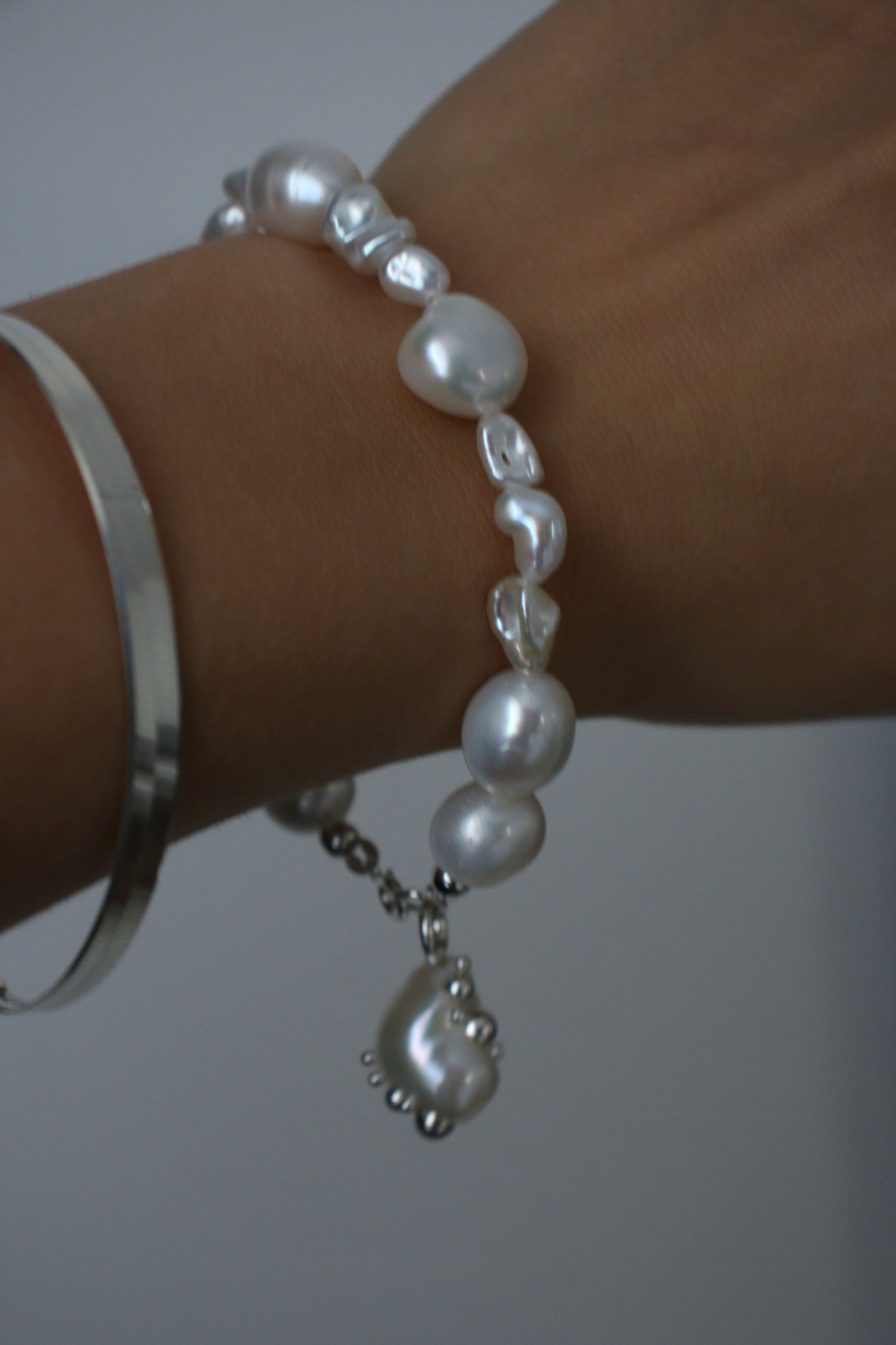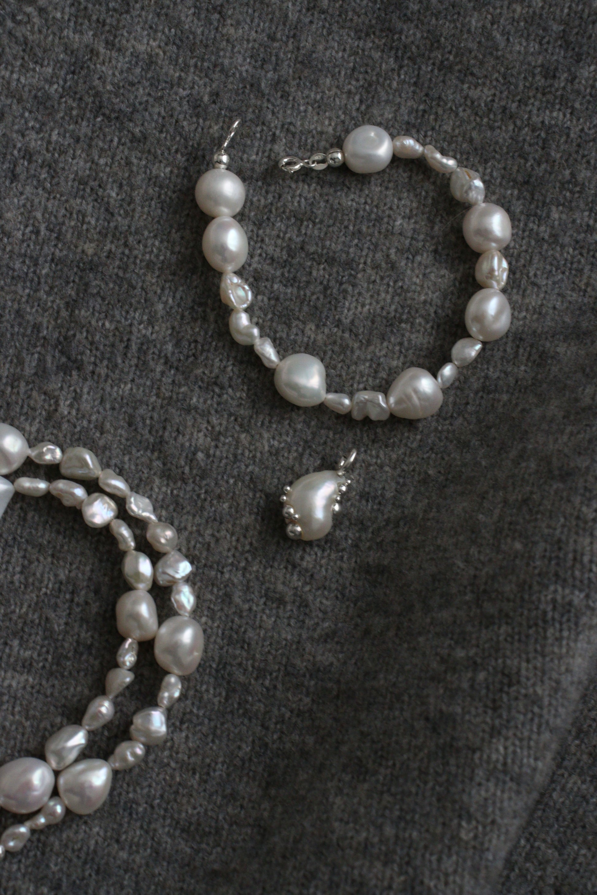 Браслет з міксу барокових перлин зі з’ємними підвісом на карабіні