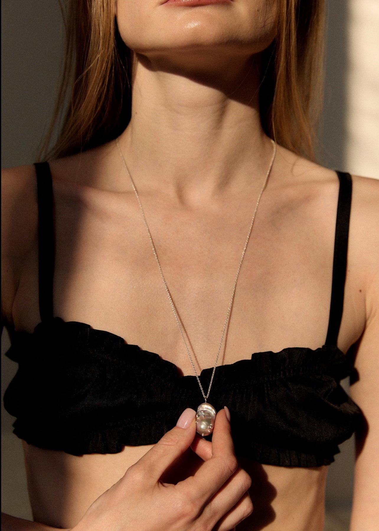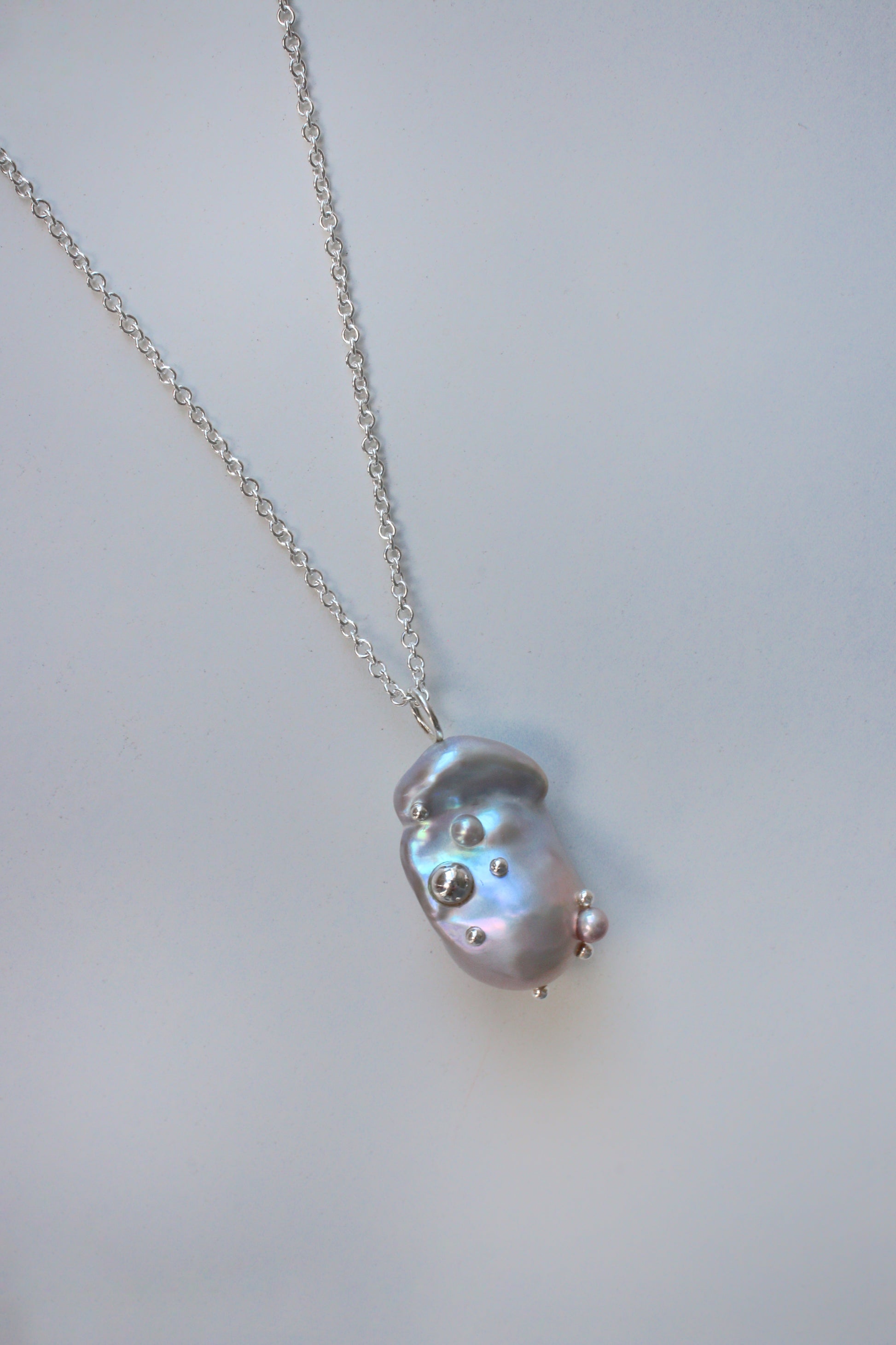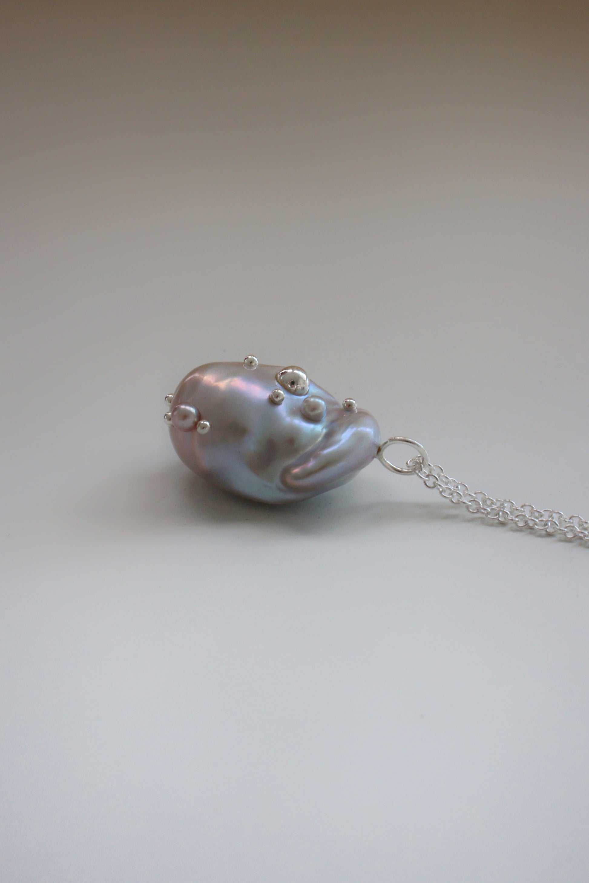 Ланцюжок з бароковою перлиною інкрустованою каплями срібла та мініатюрними перлинами.