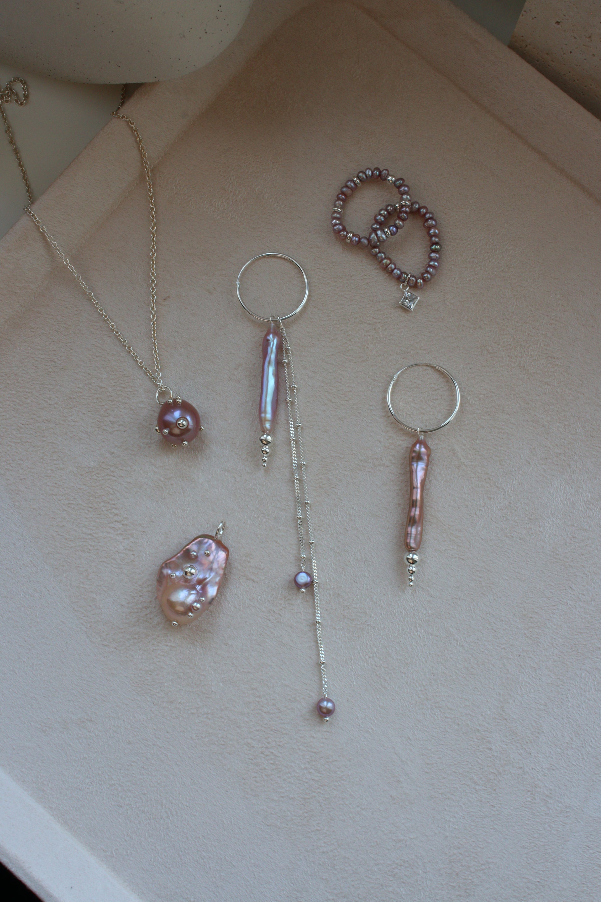 Сережки "Bubbles" з пурпуровими перлинами